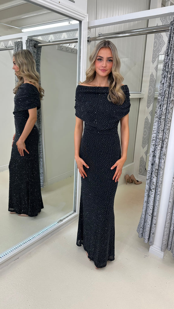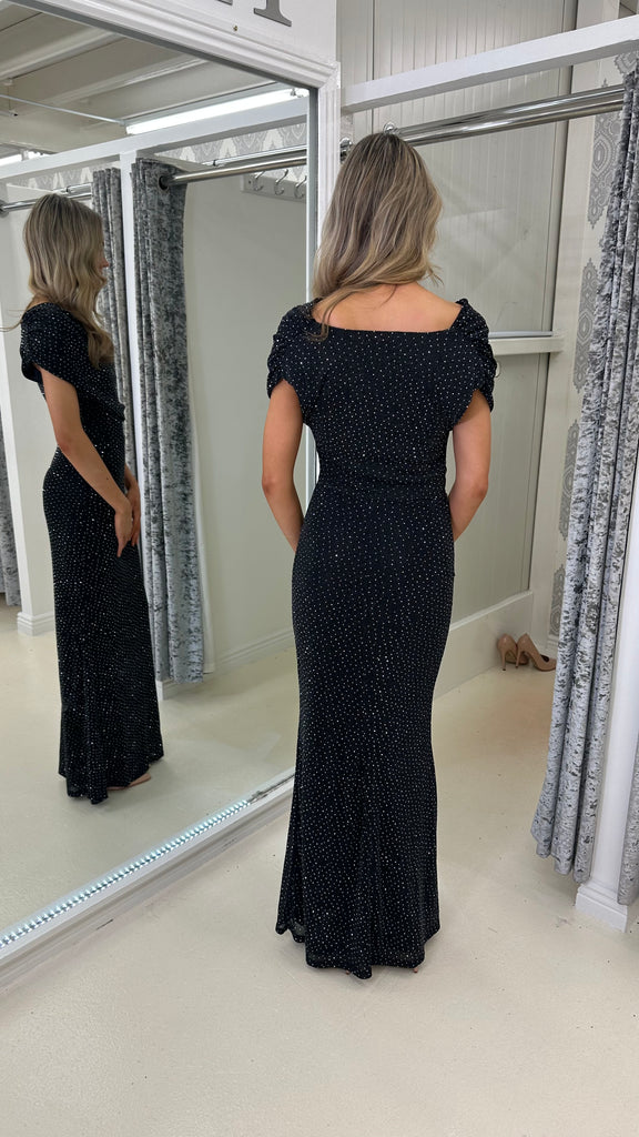 Black Midaxi Slinky Dress with Diamonte Studs
